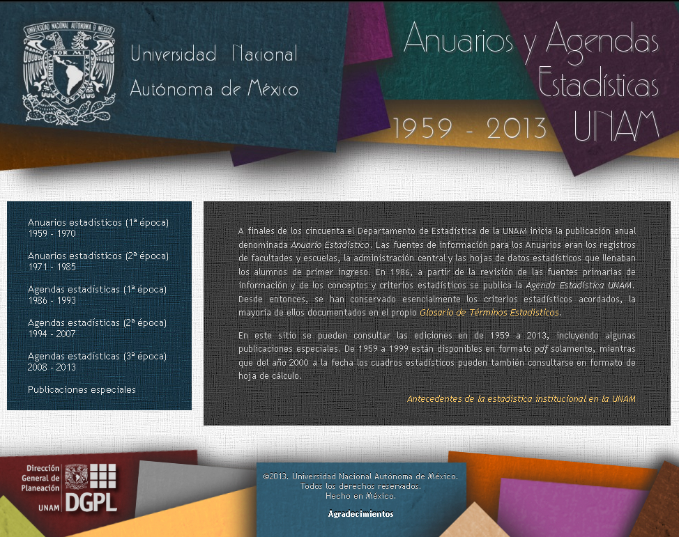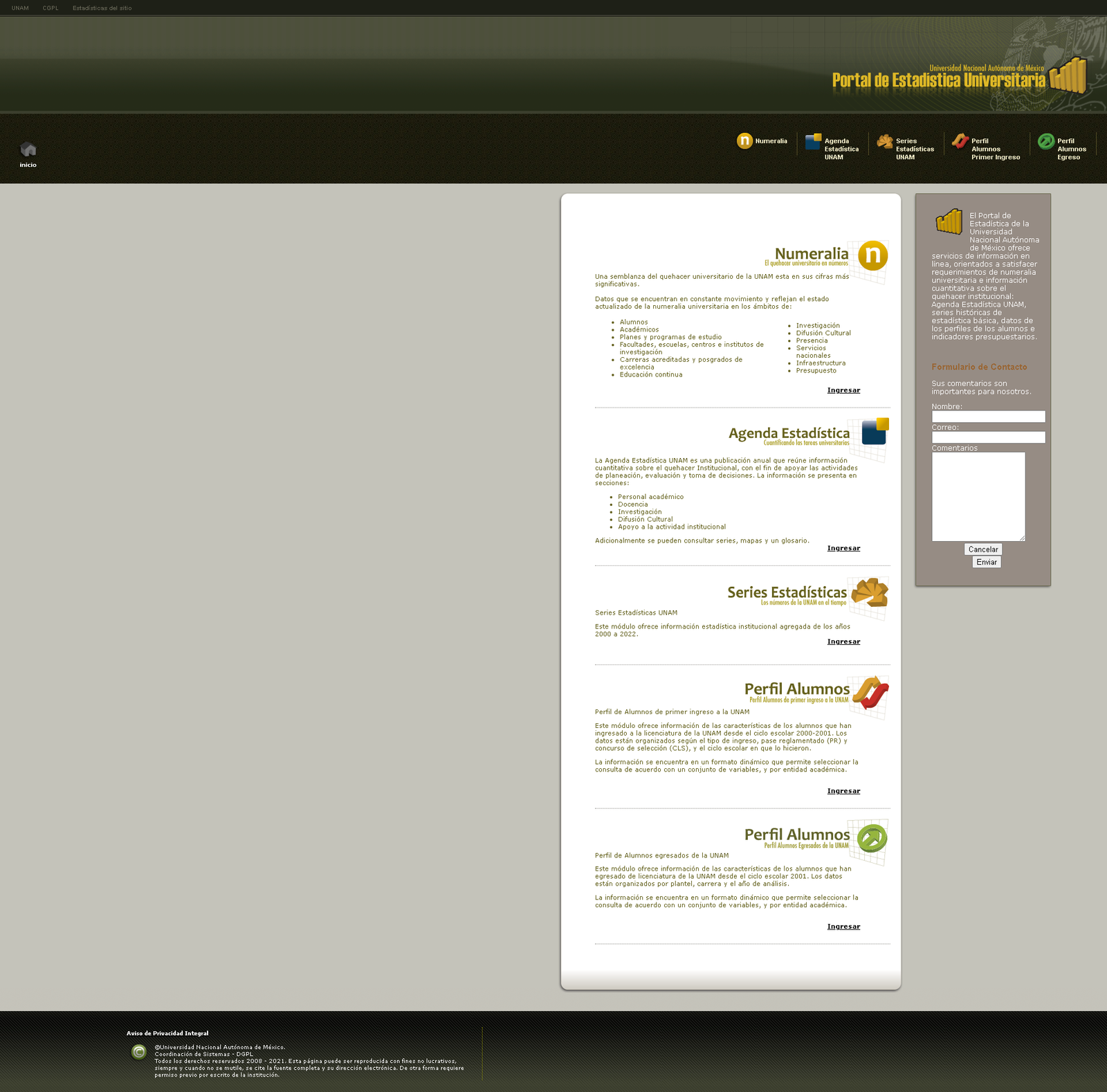 - Estandariza, procesa y difunde la información estadística de la UNAM, ofreciendo herramientas y reportes que apoyan la planeación y la gestión.