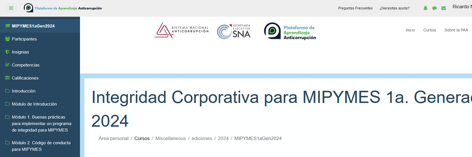 El curso Integridad Corporativa para MIPYMES -programa de capacitación en la plataforma Moodle- tiene por objetivo contribuir a que las MIPYMES cuenten con recursos de apoyo para dar respuesta a los requerimientos del artículo 25 de la Ley General de Responsabilidades Administrativas (LGRA), así como generar un cambio conductual frente a posibles actos de corrupción y fortalecer sus prácticas corporativas hacia una cultura de ética e integridad que facilite el combate a la corrupción.