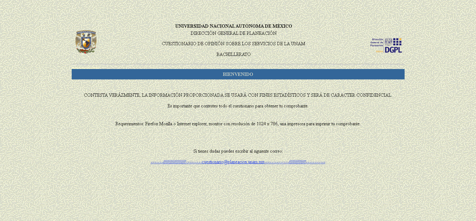 [+] 1.12.13.- Cuestionario de Opinión (Licenciatura) sobre los Servicios de la UNAM